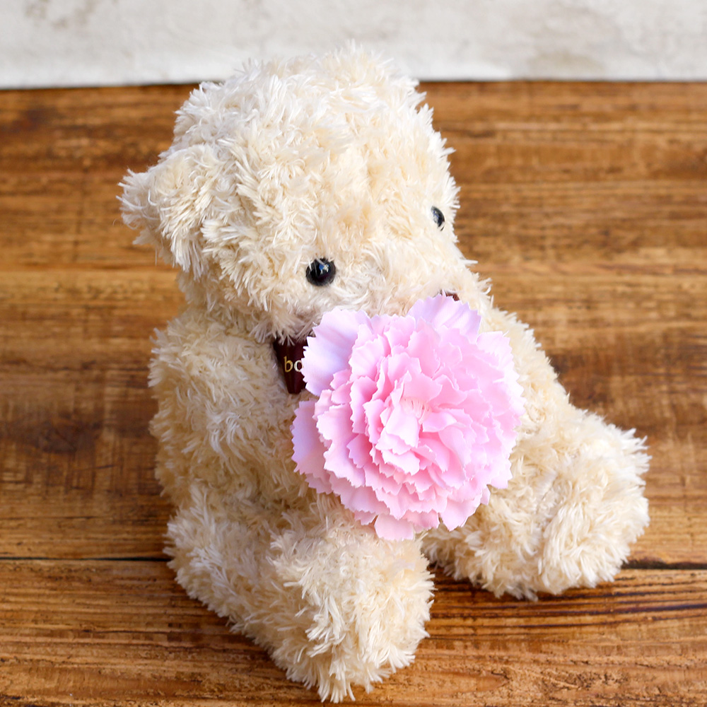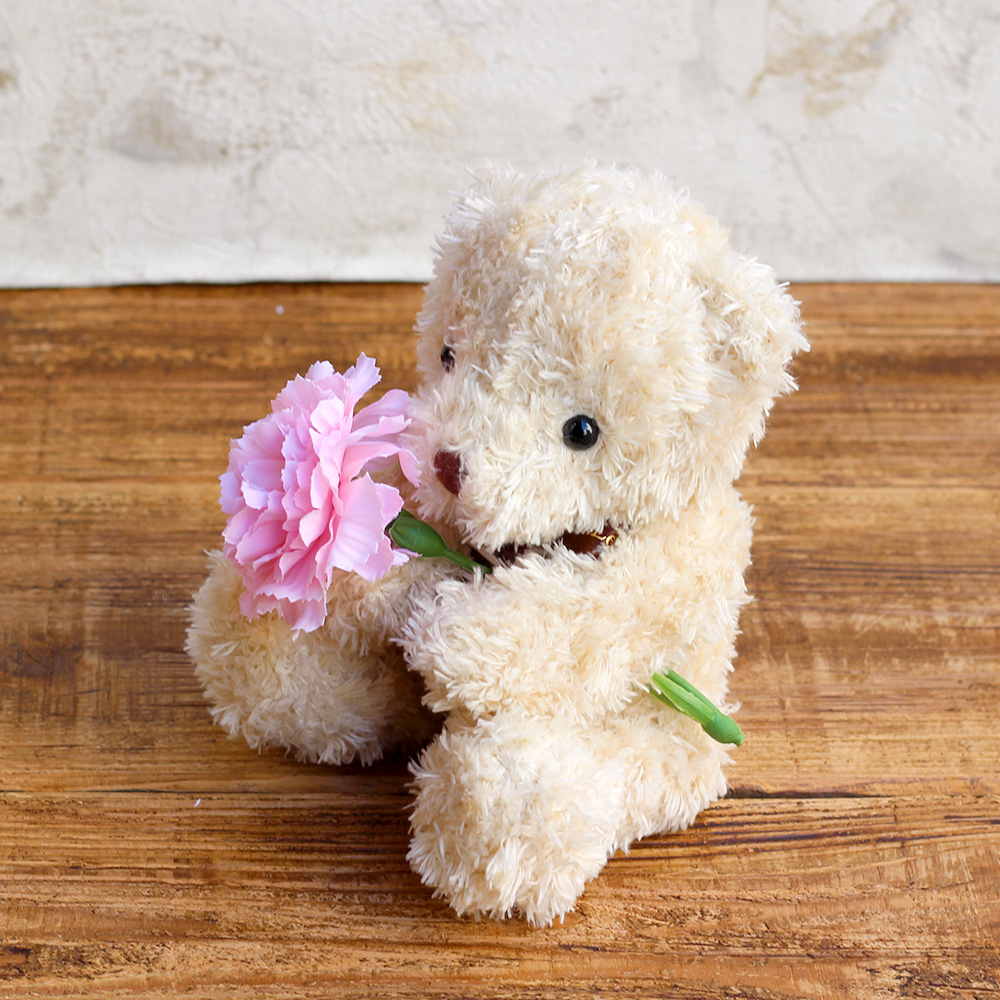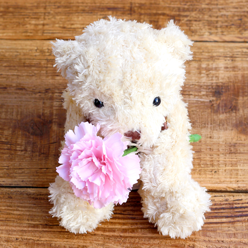 ころんとミニサイズのキュートなくまさんが、あなたの気持ちを伝えてくれます。モフモフとした毛並みと表情が愛らしいブラウンのくまさんが、母の日にもぴったりのカーネーションを持つ姿にほっこり。出産のお祝いや、お誕生日・発表会などでのちょっとした贈り物としても人気です。優しい色のベアとお花に想いを込めて、あなたからの気持ちを伝えてみませんか?※こちらのポインセチアなどは、アーティフィシャルフラワー(生花をリアルに再現し、生花にはない美しさを表現した造花)で作られています。クマの顔や形は1体ずつ異なります。写真と全く同じではございませんのでご注意ください。※こちらの商品はクリアケースに入れてお届けします