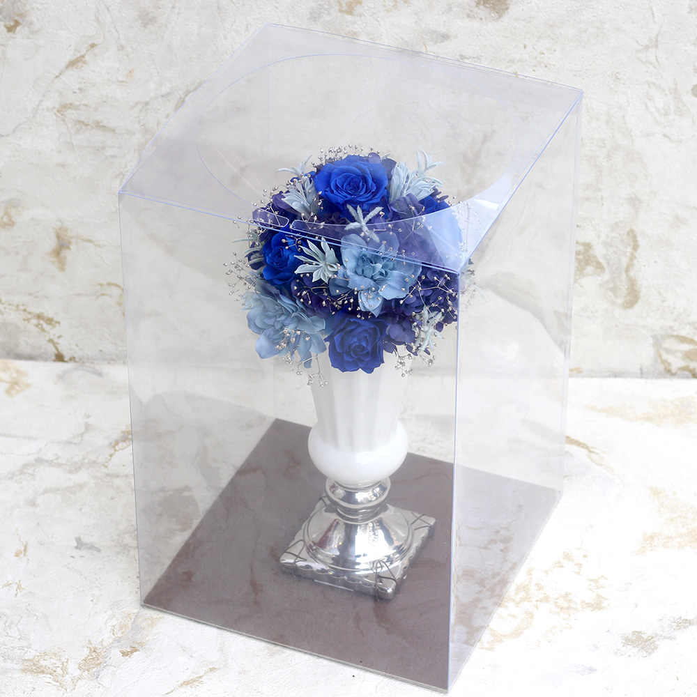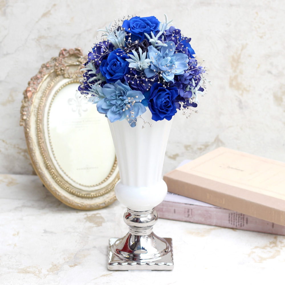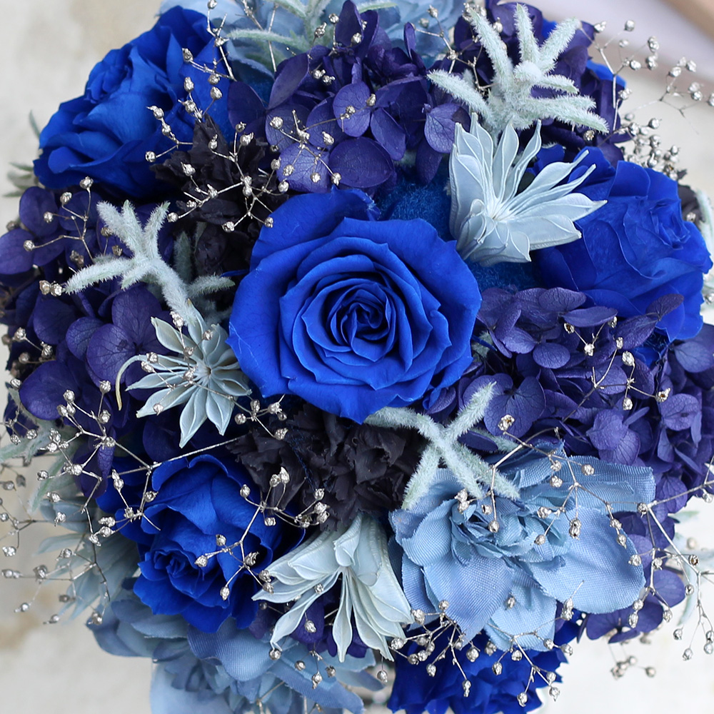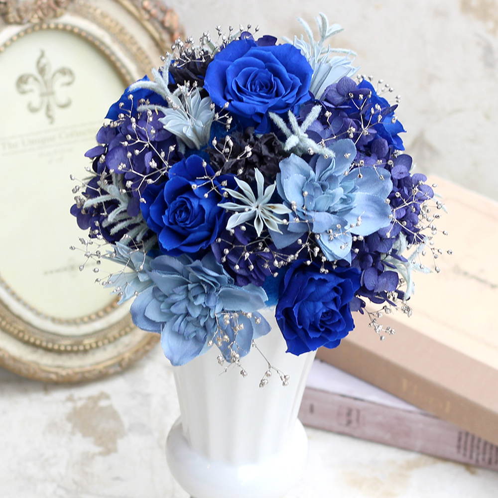 深淵なるロイヤルブルーのプリザーブドフラワーが、空間に洗練された上質なスタイルを演出します。まるで夜空に瞬く一等星のような、その濃密な色合いは、ただ美しいだけでなく、「永遠の愛」や「深い尊敬」といった高貴なメッセージを静かに伝えます。大切な方への記念日、誕生日、または特別なギフトに。日常を忘れるほどのドラマチックな美しさを贈りたいあなたへ。モダンなインテリアにも美しく溶け込み、見るたびに心を満たす、特別な一品です。