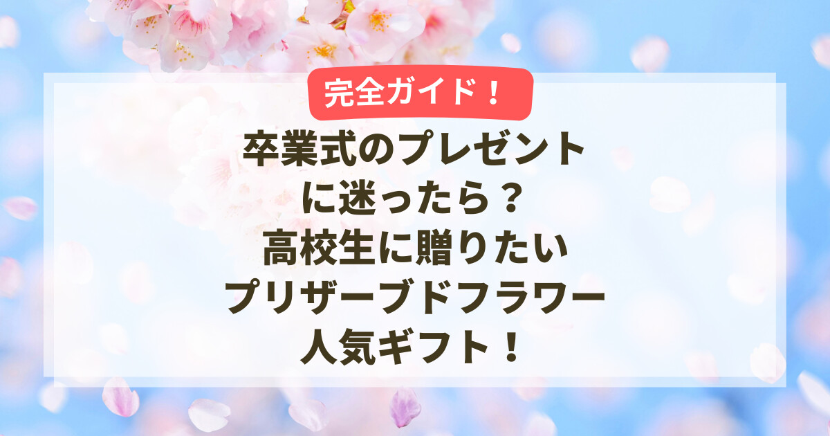 高校生の卒業式は、人生の中でも特別な節目となる大切な一日です。友達、先輩、後輩、恋人、そして家族へ「ありがとう」「おめでとう」「これからも応援しているよ」という気持ちを伝えるために、プレゼントを用意する方も多いのではないでしょうか?しかし実際には、「高校生への卒業式プレゼントって何が正解?」「重すぎないけれど、きちんと気持ちが伝わるものは?」と悩まれる方も少なくありません。本記事では、今、卒業式の贈り物として注目されているプリザーブドフラワーの魅力を丁寧に解説していきます!