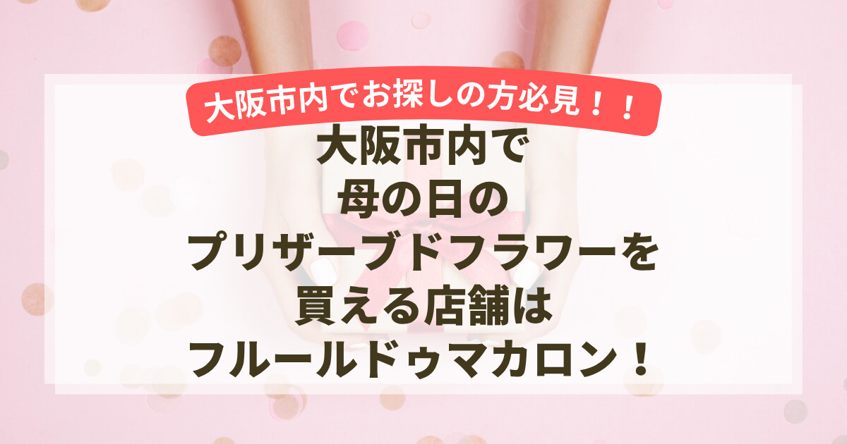 母の日はもちろんお誕生日や送別の贈り物にも人気のプリザーブドフラワー!枯れない魔法のお花としてインテリアとしても喜ばれるフラワーギフトです。「大阪市内で母の日のプリザーブドフラワーを購入したい!」という方には、プリザーブドフラワーの品ぞろえ関西最大級の花屋「フルールドゥマカロン」をおすすめします!母の日当日も営業してますのでぜひチェックしてみてください♪