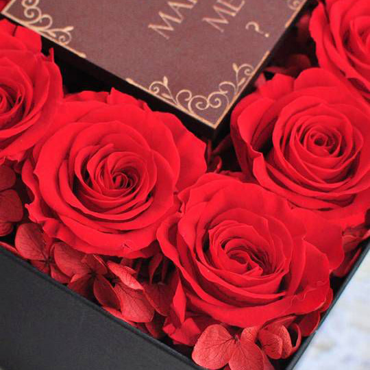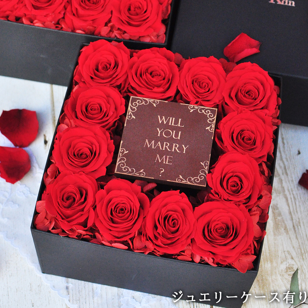 大切な恋人へのプレゼントにおすすめです。お花は全てプリザーブドフラワーを使用していますので、プロポーズの思い出を長く保存しておくことができるのも人気の理由。