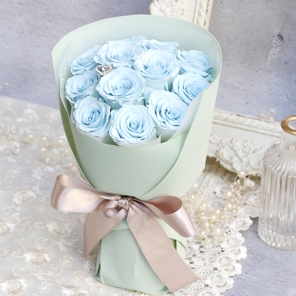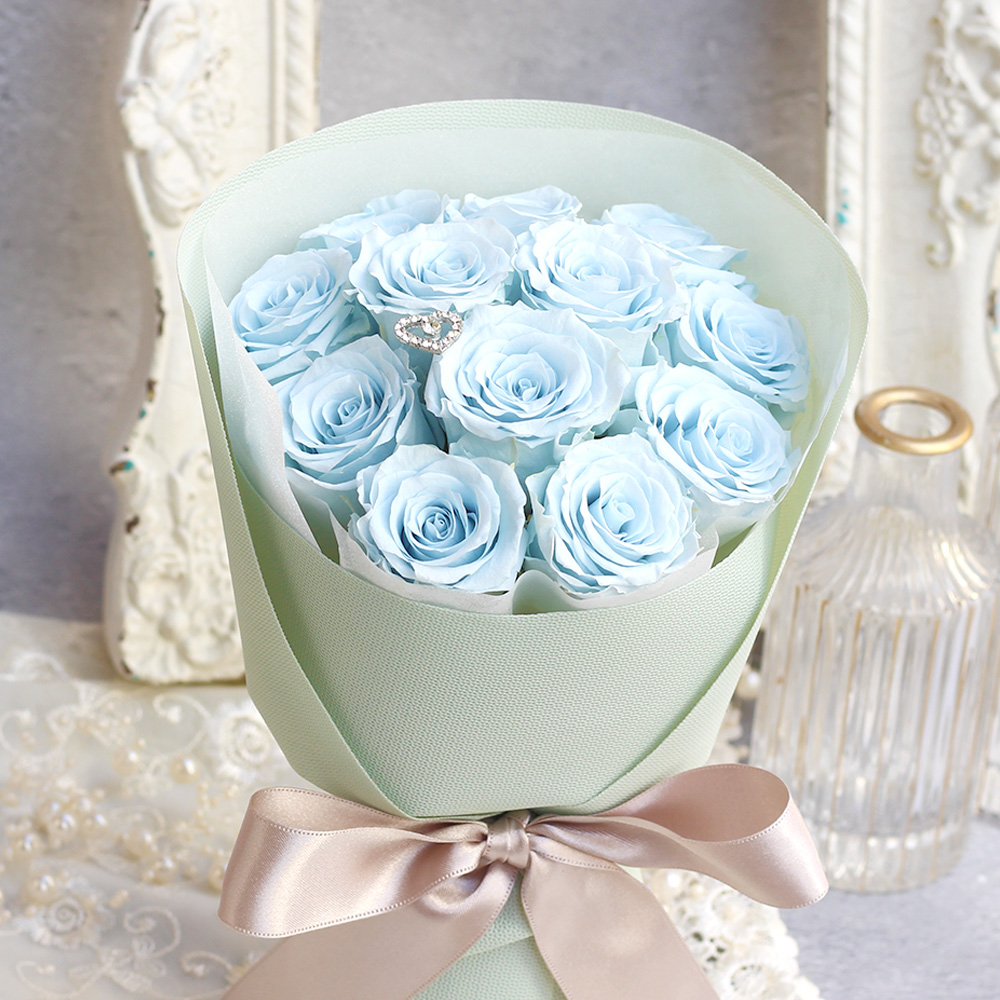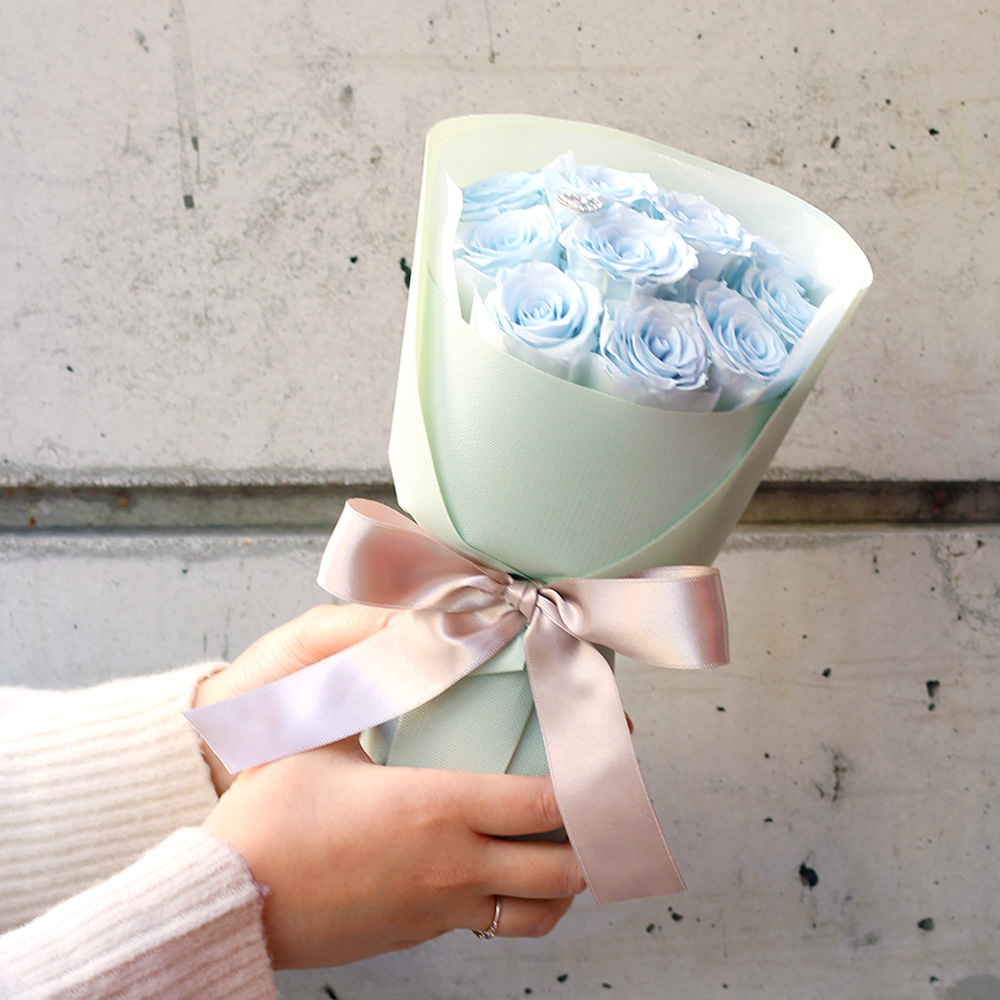 スマートにプロポーズを決めた後は、その時の想いをいつまでも楽しんでいただけるよう、自立してアレンジメントのように飾れるように作った当店特製のプリザーブドフラワーブーケ。インテリアとして、いつまでも幸せな気持ちを思い出せる特別な花束です。「私の愛は枯れることはありません」のメッセージと共に、愛する人にお贈りしませんか?