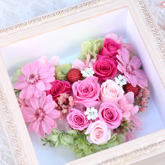 恋人へのプロポーズのサプライズプレゼントに、友人や家族の結婚お祝いにと心の込もったスイートな気持ちを伝えるフレームタイプのフラワーギフト。大切な方への記念に残るプレゼントにいかがでしょうか。