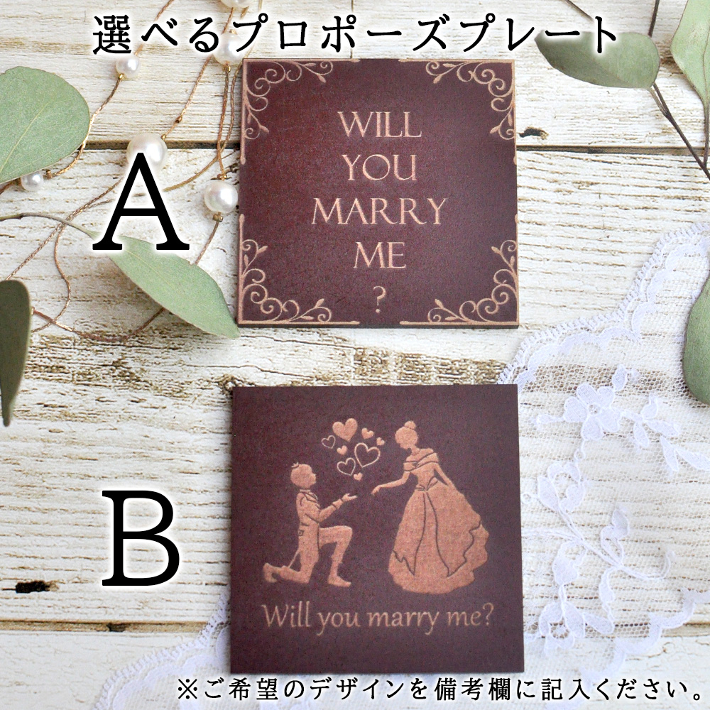 ※ボックス中央のプロポーズプレートはA・Bお好きなほうをお選び頂けます。ご希望を備考欄にご入力くださいませ。