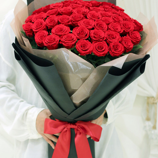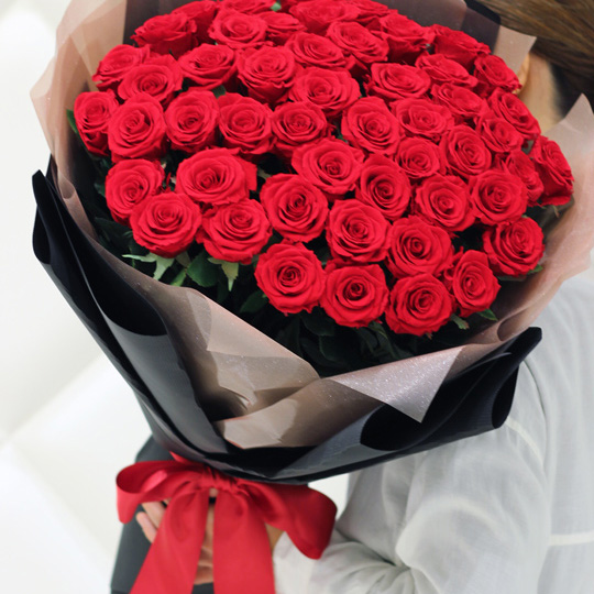 大ぶりの赤いバラを50本使ったゴージャスな花束は、お誕生日やプロポーズのサプライズプレゼントにぴったり!花言葉の意味からも感じる、偶然の出会いから、二人の変わらぬ気持が永遠に続きますよう、願いを込めて作りました。思い出に残るプロポーズを決めたい!大切な方へサプライズで驚かせたい!そんな場面を、素敵に演出してくれる特別な花束です。※ステム(茎)部分はプリザーブドではなく、造葉となります。こちらは商品の特性上、【クリアケース無し】でのお届けとなります。発送の際には破損の無いように発送用ボックスの中へ固定してお届けさせて頂きます。予めご了承下さいませ。